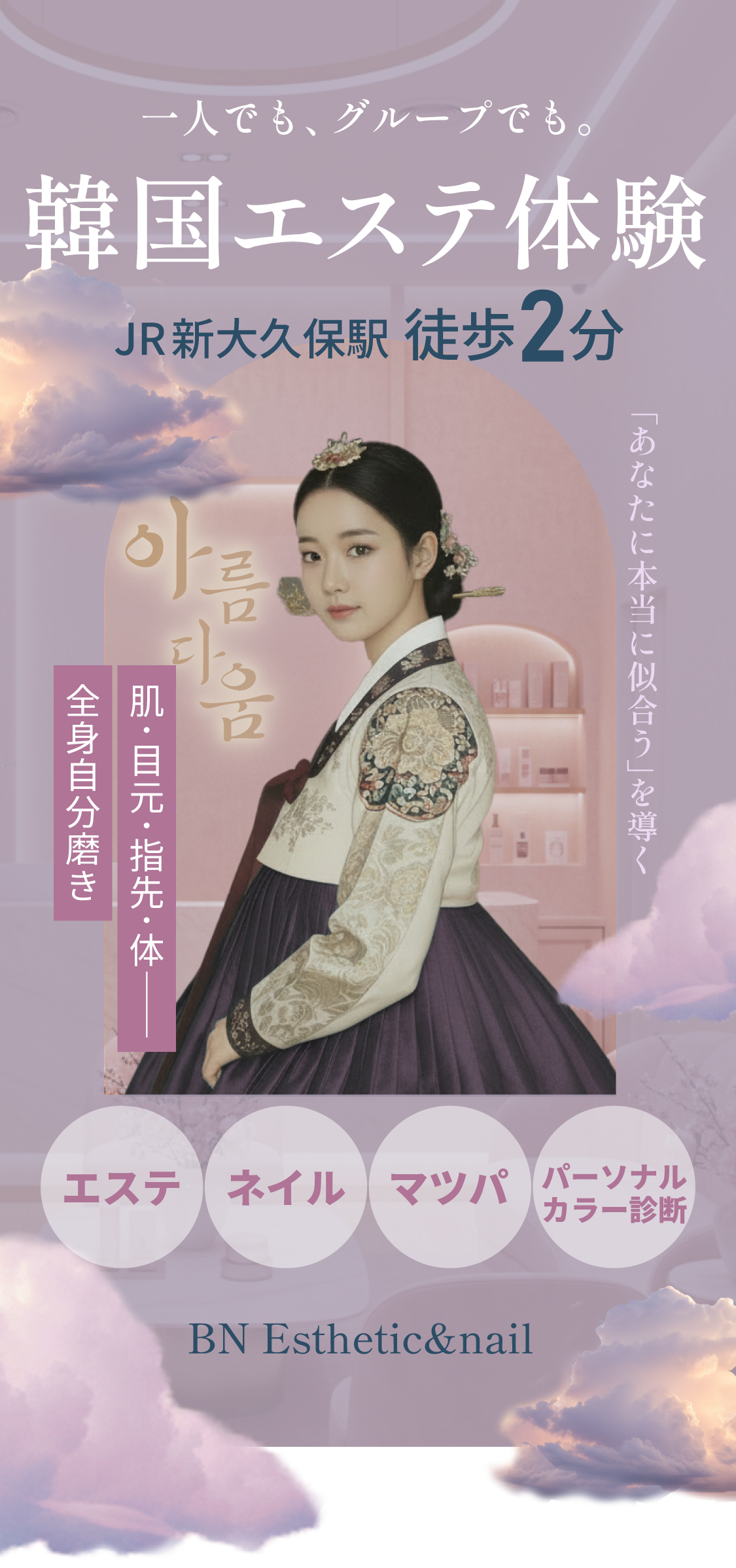 お出かけ前やご旅行中など、限られた時間の中でも効率よく整えたい方におすすめです。施術内容や所要時間に合わせて、無理のないスケジュールをご案内いたします。※事前のご予約をおすすめしております。